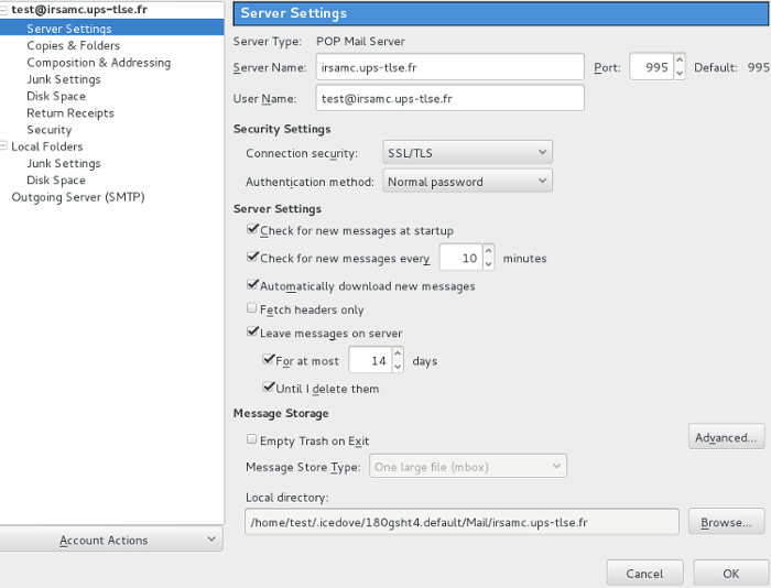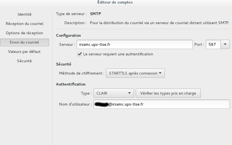 Le nom d’utilisateur demandé dans les différentes configurations est toujours le login@irsamc.ups-tlse.fr